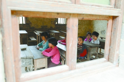 9月7日,沅陵县荔溪乡官坪小学,孩子们在缺少窗玻璃的教室里听课。在湘西山区,很多地处偏远的农村学校(教学点)条件都很简陋。