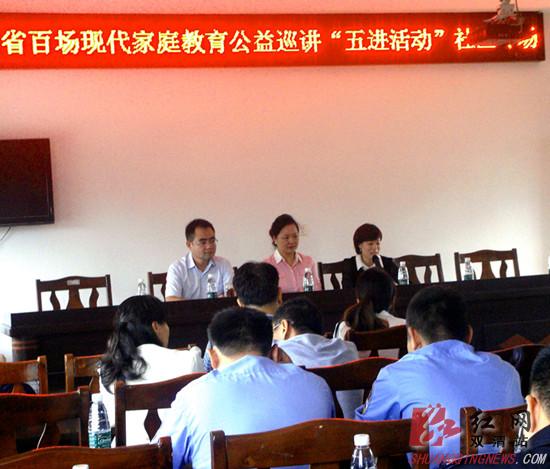 红网双清站9月11日讯 (通讯员 何璟 蔡苏乐 屈海波 分站记者 赵绍君) 为营造良好的家庭教育氛围,学习交流家庭教育方式方法,帮助家长树立正确的家庭教育理念,共同促进孩子的健康成长。9月8日上午,“湖南省百场现代家庭教育公益巡讲五进活动”在小江湖街道办事处举行。邵阳市妇联副主席曾志华、市妇联儿少部刘婧及双清区妇联副主席岳红艳参加了此次活动。本次宣讲以“关注孩子活动的能力,引导孩子走向幸福”为主题,办事处多名家长聆听了这场精彩的报告。