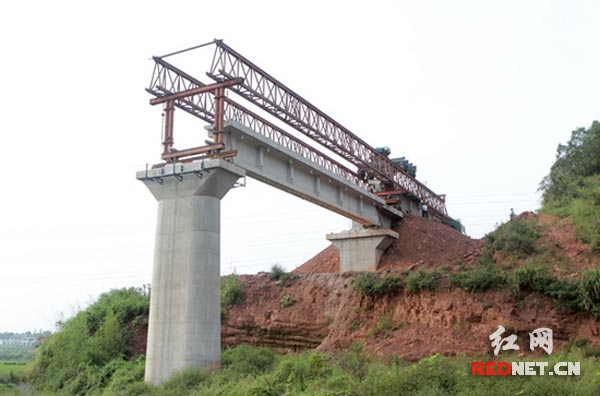 攸县能源公司铁路工程是攸县煤电一体化项目工程的重要配套项目,是负责该公司燃煤和大型设备运输的铁路专用线。工程总投资2.17亿元,全长8.147公里,共有12座单线铁路桥梁,需架设84孔(168片)T梁,预计明年8月完工。