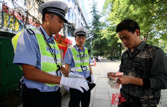 12日上午11点50分许,武陵大道育才路口的车辆逐渐开始多了起来,常德市交警支队直属一大队二中队的中队长严飞和他的4名同事们正在此地疏导交通。就在此时,一辆摩托车载着2名女乘客由南向北行驶过来,在靠近市工商局一侧的地方摩托车突然制动,当车还未停稳,摩托车司机就已经下车直奔街对面而去。“当时我听到一声刹车声,就看到一个人跑了过去,我们就看到了对面地上散落了一沓百元大钞,一个黑色钱包被扔在一边。”见到此幕,严飞和他的同事立刻赶往现场制止周围行人捡钱的行为,在了解情况后,他将行人捡到的钱和和地上余下的钱共计3790元现金暂时保管,并对围观捡钱者的行为作出了批评。
