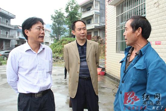 李少阳(左一)在洗洛乡牌楼村同农民交谈