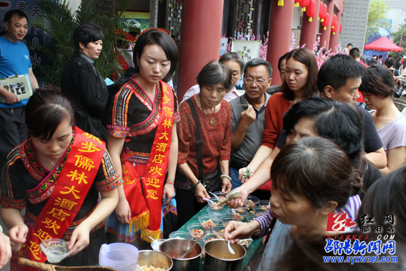 本届旅博会历时三天,展会内容涵盖“吃、住、行、游、购、娱”六要素及旅游关联产业,重点展示全省14个市州各县(市、区)旅游景区景点、旅游精品线路、旅游知名企业及特色旅游产品。邵阳展区内,隆回的龙牙百合、大祥的宝庆四宝、洞口的雪峰贡米、武冈的华鹏豆腐、绥宁的苗族插绣、李文食品的蒜蓉辣酱、筱溪库区的玫瑰花茶等特色旅游产品及传统民间工艺品精彩呈现。来自城步的石英质玉石雕刻《鼎盛》、《富贵长寿》、《辉煌腾达》及圆仔系列山野茶油等更是吸引了省市领导和广大境内外游客驻足观赏,尤其是目前正在全力冲刺国家非物质文化遗产的油茶(习俗)让广大游客大饱口福、赞许有嘉。