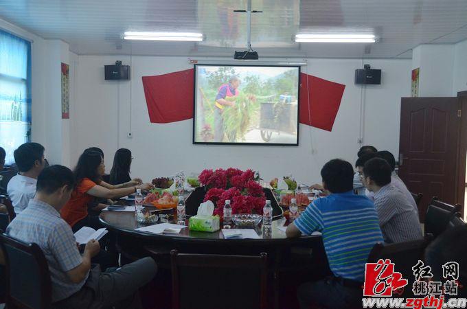 省两型办副主任陈晓红一行在桃花江镇崆峒村观看汇报宣传片 张琴 摄