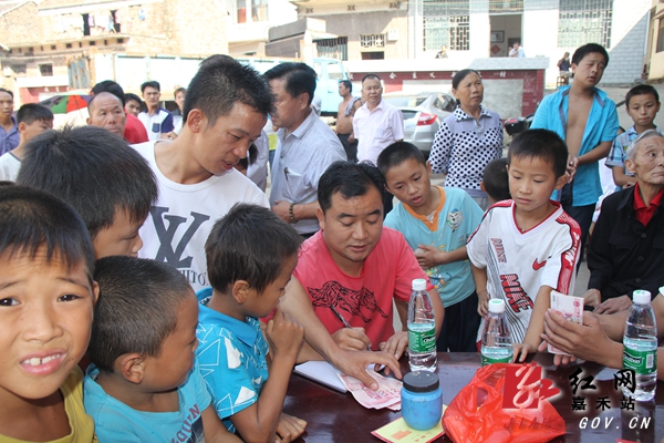 “这钱都是我的零花钱,是过年的时候亲戚封的红包钱,还有爸爸妈妈平时给的一些零钱,总共100块钱,我觉得把这个钱捐给村里用于建设公路更有意义”,尹三金用仍然略带稚嫩的童音说到。