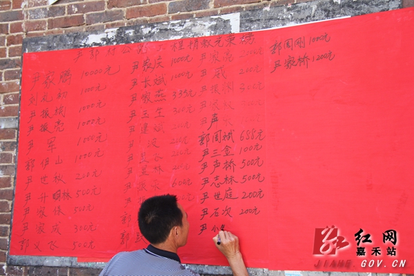 红网嘉禾站9月22日讯(分站记者 罗飞雄) “村里修了这么好的通村公路,作为村里的一份子,我自愿捐款10000元,用于支持村里的建设”,9月19日,中秋佳节,塘村镇尹郭村举行通村公路捐款仪式,该村企业家、县人大代表尹家鹏不仅率先捐款1万元,还积极鼓励村里的企业家和社会各界人士为通村公路慷慨解囊。