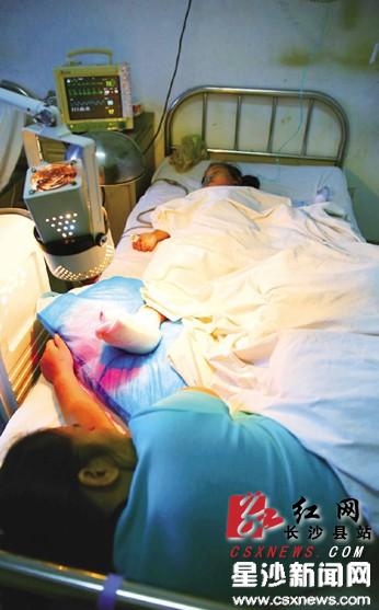 昨日下午,刚做完大脚趾手术的小怡正躺在床上安睡,小怡的妈妈也陪着睡在旁边。曾诗怡 摄