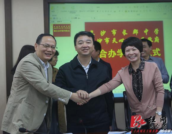 红网天心站9月26日讯(通讯员 姜威)9月26日上午,天心区人民政府与长沙市长郡中学举行长郡天心中学联合办学签约仪式。长沙市教育局局长王建华、副局长缪雅琴,天心区委书记曾超群,区委常委、区委办主任谭雄伟,副区长刘晓蓉出席签约仪式。刘晓蓉代表天心区政府与长郡中学签约。