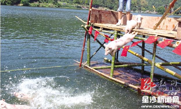 “此次石燕湖精选了10头30斤左右的小猪进行训练,因为游泳是猪的本能,只要对小猪们稍加训练,小猪们就能自觉从跳台上跳下,往终点游去。”该工作人员说。