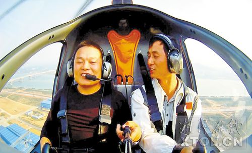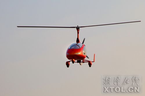 红网湘潭站10月8日讯(湘潭晚报记者 陈旭东 摄)湖南省旋翼飞机爱好者驾驶一架轻型旋翼飞机在湘潭市岳塘区上空进行了3小时各种飞行的精彩表演,并分别携带者着湘潭市的十余名飞行爱好者搭乘旋翼飞机,体验翱翔、飞跃湘江的感受。