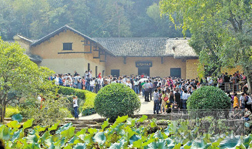 游客排队参观毛泽东同志故居 (曹梦 摄)