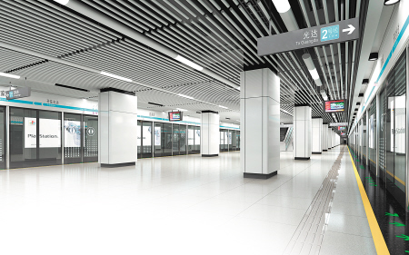 地铁站公共区是将来人们搭乘地铁时步行通过的公共区域。袁家岭站内的样板段对站厅层,站台层的墙面、地面、天花板以及柱子的装饰装修效果进行了初步展示。“公共区的装修坚持简洁、美观、实用的原则,同时满足防火、防潮、防腐、耐擦洗和便于维修的要求。”据有关负责人介绍,袁家岭站样板段地板采用浅色花岗岩材料,硬度高、易清洁;柱子采用耐撞击、防火等级高、安全性好的搪瓷钢板,柱子边缘处理成弧线,以避免乘客上下车时因拥挤造成伤害;天花板是浅灰色细圆柱排列的镂空吊顶,既大气通透又便于检修,有利于空调通风和其他设备的散热。目前,车站公共区的装饰装修施工已经在2号线各车站全线铺开,预计年底基本完成。