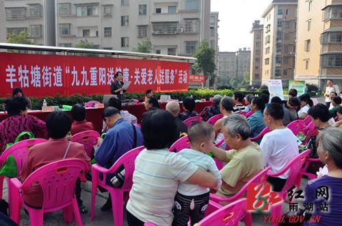 红网雨湖站10月11日讯(分站记者 陈娟)重阳将至,为更好地服务老人、关爱老人,10月11日,羊牯塘街道举办“九九重阳送健康、关爱老人送服务”专场活动。活动邀请了国家高级营养师、湘潭市健康教育团讲师沈凤兰主讲了一场“科学养生、幸福人生”的专题讲座。此外,群众还能在活动现场办理老年优待证,进行健康检查,以及咨询养社保、低保、就业、计生等相关政策。