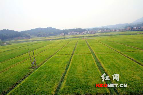 (隆回县雷峰村超级稻高产攻关试验区农田)