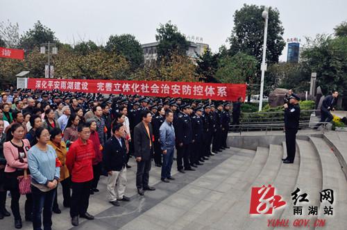 雨湖区科学整合社会防控资源,建立动静结合和点线面一体化巡逻防控网络。由公安民警组成的专职巡逻队伍和城管、环卫、社区工作人员组成的义务巡逻队伍,共计一千多人,每天在区辖主干道、案件多发地段进行巡逻,增强全区有效预防、控制和减少违法犯罪的能力,确保人民群众公共安全。