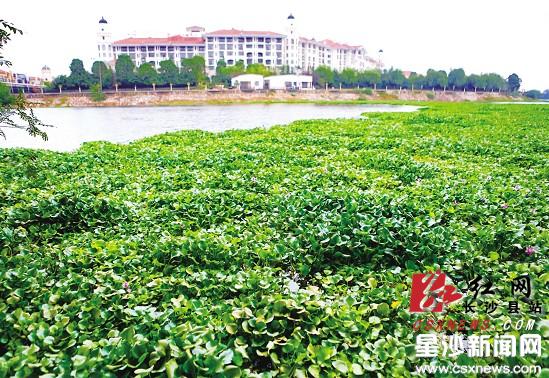 松雅河河面被密密麻麻的水葫芦占领,像凭空冒出一片“绿洲”,水务部门表示,水葫芦尚在繁殖阶段,能净化水质,待进入腐败期再组织人员进行打捞。章帝 摄