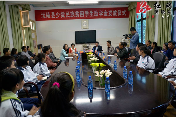 据悉,少数民族义务教育助学金是党和国家民族优惠政策的重要组成部分,我县作为全省全省6个少数民族人口过半县之一,在享受这项民族优惠政策方面,湖南省民委比照自治县的标准,每年拨付我县40万元作为少数民族义务教育助学金。我县在以往的少数民族义务教育助学金发放仪式中,以政府发文的形式规范了助学金的操作办法,把有限的资金用在了全县需要救助的贫困学生身上。今年,县里在总结过去助学金发放工作经验的基础上,结合我县教育工作实际,对助学金的传统发放方式进行了试点改革,将定位在“义务教育”阶段的助学金延伸到我县高中阶段学生,试点在沅陵一中,定额2万元,从今年的高一新生中筛选10名品学兼优、家境相对贫困的少数民族学生,每年每人资助2千元,并实行跟踪服务的资助的方法,直到完成高中阶段学业。