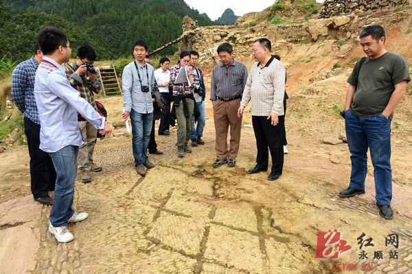 红网永顺站10月17日讯(分站记者 余光龙)10月15日至16日,中国建筑设计研究院建筑历史研究所副研究员、副所长刘剑和环艺景观工程师张景华带领建筑、规划等专家考察组一行,在省文物考古所所长郭伟民,县领导李平、陈海波、曾维秀、王本跃、孔凡卫等陪同下,来永顺县老司城考察。专家组一行实地考察老司城遗址监钦湾、水磨坊、午门遗址、土司古栈道遗址、灵溪河石刻题铭、谢圃公署遗址、碧花山庄遗址、土司钓鱼台等北部区域沿河遗存,关注开放展示区域及相关遗存的评估。