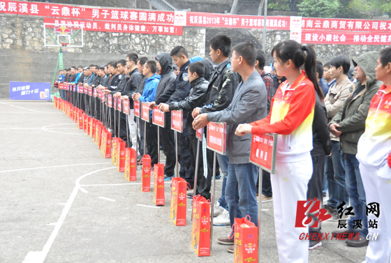 红网辰溪站10月18日讯(分站记者 米承实 通讯员 米小慧)10月18日上午,辰溪县2013年“云鼎杯”男子篮球赛在淅淅沥沥的秋雨中开幕。辰溪县委常委、县委办主任向玉超宣布比赛开幕,县人大常委会副主任孙叙礼、副县长瞿布英、县政协副主席雷小平到场为运动员加油。