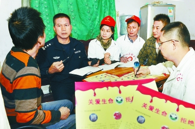 10月17日,长沙市雨花区左家塘街道左家塘社区民警、志愿者及医务人员组成的服务小分队,来到社区戒毒康复人员家中服务。该社区开展“关爱健康 ,共享蓝天”活动,为戒毒康复人员提供身体检查等服务。