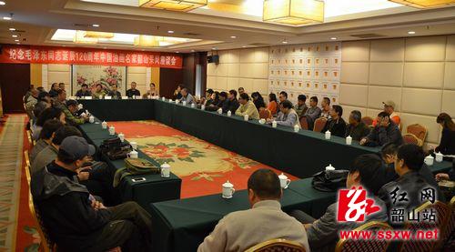 红网韶山站10月21日讯(通讯员 沈江)10月21日,“中国梦·韶山情”纪念毛泽东同志诞辰120周年中国油画名家韶山采风座谈会在华龙山庄举行。中国美术馆馆长范迪安、中国美协副主席范迪安出席活动并宣布采风活动启动,湘潭市副市长苏健全,韶山市委常委、市委宣传部长文雯出席并致辞,来自全国各地的40余位油画名家参加座谈会。