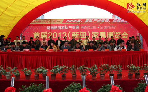 红网新田站10月21日讯(分站记者 邓提茂 王玉洁)10月19日,新田县华泰家俬产业园内彩旗猎猎,“湖南新田家私产业园全国招商启动仪式暨新田县首届家具博览会”在这里隆重举行,来自全国各地的客商和上万市民共同见证了属于新田自主品牌“家私航母”扬帆启航。新田县是全国有名的“沙发之乡”,上世纪七十年代,该县就开始兴起沙发等家私行业的研究、生产和经营,目前,全县从事家私业劳动或经营的人员约有3万人,经营点遍布全国除台湾之外的所有省份。为发展家俬经济,壮大自主家私品牌,该县规划了一个总占地面积3000亩的湖南新田家私产业园,将建成一个全国最大,集研发、生产和销售为一体的综合性家具制造、销售基地。园区包括家具生产区、商贸区、物流区和其他配套服务四大园区,预计建设总投资60亿人民币。现一期工程已建成并投入使用,占地面积143亩。随着“恒韵华泰”商标的注册、投产,宣告了中国又一品牌家俱的诞生,该品牌可年生产板式家具3.6万余套,19日,首批家具成果顺利面世,并在博览会上进行厂价直销,回馈广大消费者的支持与喜爱。
