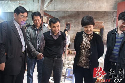 在铜官古镇,吕庭华寻访着一家家古街上的陶瓷作坊,并走入民间艺人陶艺工作室和家庭制陶作坊,仔细观看陶瓷艺人现场拉坯制陶。在彭望球的制陶作坊,吕庭华向陶艺坊负责人详细了解其发展情况,当看到其将古窑文化与现代制瓷工艺糅合,并主推了古朴中又不乏时尚元素的“茶陶”时,吕庭华对此表示了浓厚的兴趣。他说,文化创意产业涵盖非物质文化遗产开发、工艺礼品、艺术原创和文化休闲旅游业等方方面面,正需要这样的创新精神来推动新的发展。