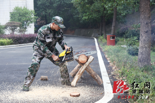 演练现场,森林治安巡防分队队员们携带灭火水枪、油锯、风力灭火机等灭火工具冲向“火灾”地点,演示了风力灭火机、油锯、多级泵,森林消防水车高射水炮等消防器材的操作。风力灭火器的主要作用是利用劲风隔离着火源。演练中,消防队员们用5斤多重的土砖替代火源,当风力灭火器拉足马力对准土砖时,即能将它吹离30多米的距离,即有效地将易燃物品吹火源,阻挡火势。随后,队员们演示了手提油锯,将直径20公分的木材精准有力地锯断的全过程,指导员介绍说,锯断木材是为了将树木着火点迅速分离开来,并消除阻挡通道的障碍,从而开辟一条顺畅的消防通道,以达到防火目的。