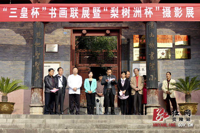 红网炎陵站10月25日讯(分站记者 邹密 彭新平)今天上午,炎陵县2013年“三皇杯”书画联展暨“梨树洲杯”摄影展开幕仪式在洣泉书院举行。株洲市文联主席黄勇,河南省淮阳县、新郑市相关领导出席开幕式。县委常委、宣传部长肖锦霞宣布“三皇杯”书画联展暨“梨树洲杯”摄影展开幕。县政协副主席黄建林主持开幕式。