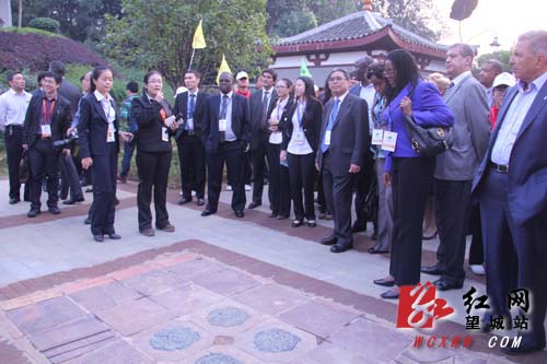 红网望城站10月25日讯(分站记者 解巾英)10月24日,参加世界休闲农业与乡村旅游城市(城区)联盟第一次峰会的与会代表、驻华使节及夫人、国内外媒体代表约300余人参观游览了乔口渔都和铜官窑国家考古遗址公园。