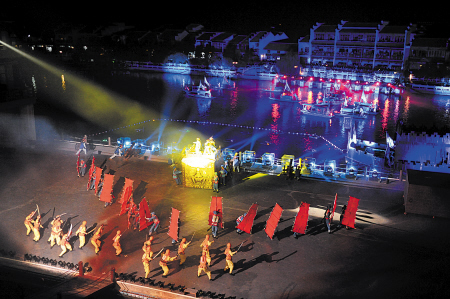 本报讯(记者 王斌 通讯员 姚静 实习生 巫艳)10月24日晚,首部还原靖港古镇百年历史的实景演出《靖港故事》在长沙首映,演出讲述了千年靖港厚重的历史文化、浓郁的民俗风情、如诗如画的自然风光、幸福祥和的市民生活。来自全球五大洲46个国家的驻华使节,26个城市联盟(市长)代表以及众多国内外媒体代表齐聚望城,出席并观看《靖港故事》首映式。