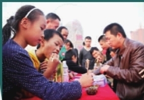 厨神大赛上,厨神们做的佳肴香味四溢,几名小朋友正享受这美味。