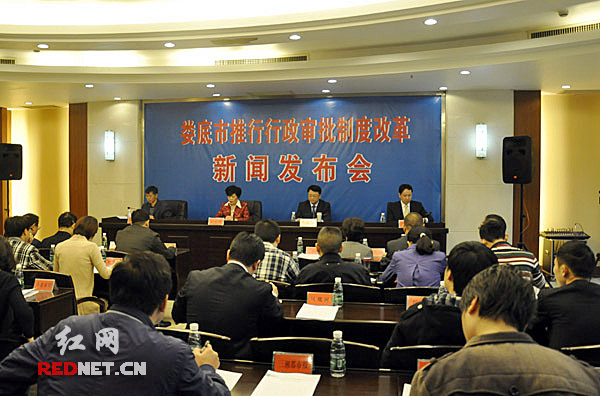 (10月29日,娄底市召开推行行政审批制度新闻发布会。)