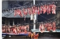 记者找到挂这些鲜肉的主人肖女士,她是一家肉铺的店主,“我晒的猪肉很多,地方不够,才想着挂在电缆上。”