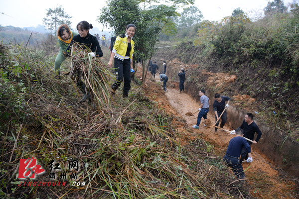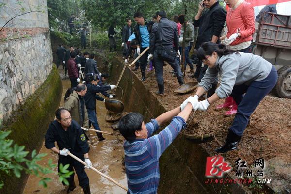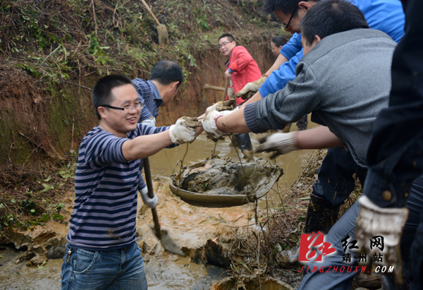 万人清淤,靖州县委书记钦代寿(中)率先动工 龙本亮 摄
