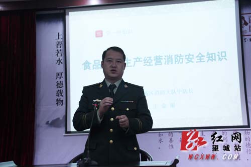 区消防大队教官介绍食品药品生产经营消防安全知识。解巾英 摄