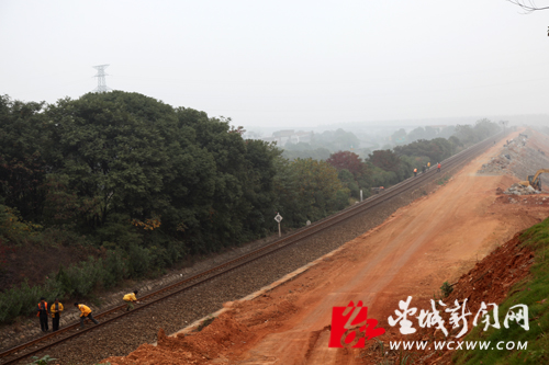 石长铁路增建二线(望城段)正加紧施工建设进度,力促2015年全线通车。(姚泽子 摄)