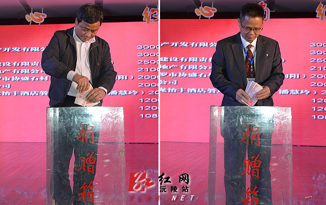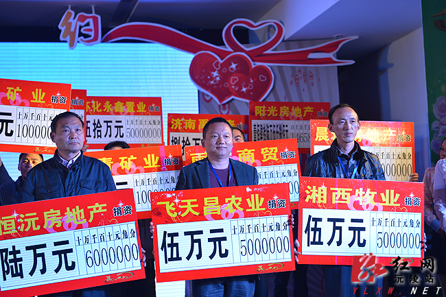 沅陵各界企业代表上台举牌捐款