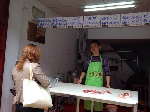 今年10月初,他们4个人精心策划,在该县城乡结合部的9634农贸市场开了一家专门销售土猪肉的“一佳土猪”专卖店,每天限定只卖一头土猪,虽然比同市场其它摊档上的肉价贵2元每斤,但仍然供不应求。