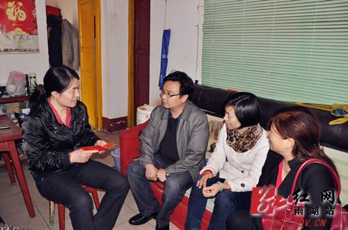 原来,这是雨湖区纪委副书记、区监察局局长沈华强在走访他联点社区的困难群众。郭建平今年50岁,是市二纺厂的下岗职工。她的丈夫也是下岗职工,受过工伤后身体残疾,一直没有再上过班。儿子读大三,一家人就靠郭建平打临工来维持,生活非常困难。