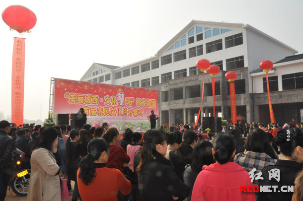 (以“美丽乡村,文化蟹城”为主题的湖南湘阴鹤龙湖镇首届农村文化月活动正式开幕。)