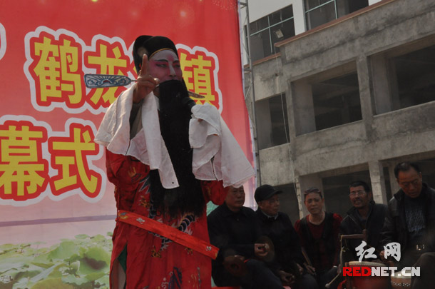 (当地喜剧演出人员在表演专业花鼓戏。)