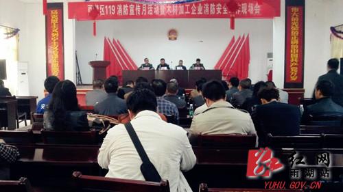 红网雨湖站11月8日讯(通讯员 刘菁) 在“119消防日”即将到来之际,为进一步贯彻“预防为主、防消结合”的消防方针,提高广大企业主和职工的消防安全意识及应对突发事件的能力,确保企业的生命财产安全,防患于未然,11月7日上午,雨湖区消防部门组织辖区43家木材经营加工企业在先锋乡举办了一次别开生面的消防专题宣传活动,旨在提升木材加工经营企业主的消防安全意识,提升各业主的防火、灭火知识和逃生自救的基本技能。