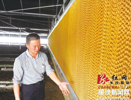 红网长沙县站11月11日讯(分站记者 寻芳)栽培蘑菇在不冷不热的环境下最适宜,如果用空调来控温,耗电量肯定不是小数目。在高桥镇高桥村,5位农民合伙建四连栋智能温控大棚,利用风机与水帘降温,锅炉来加热,不仅节电九成,而且一年生产蘑菇的时间可拉长至9个月。