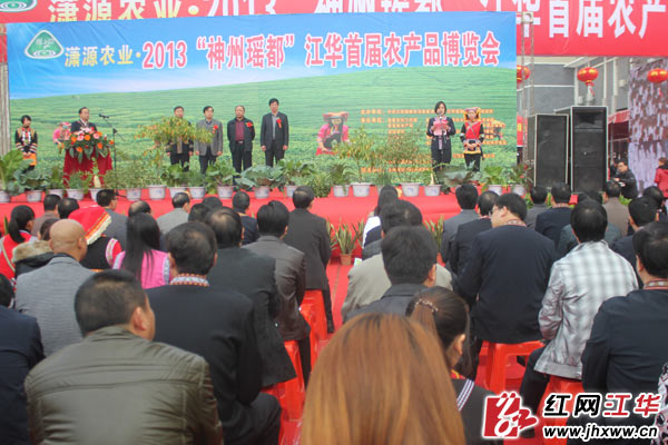 红网江华站11月16日讯(分站记者 唐建国)11月16日上午,美丽的神州瑶都,流光溢彩,商贾云集,热闹非凡,2013神州瑶都江华首届农产品博览会在江华大道锦绣江华广场正式开幕。参加开幕式的有永州市农业局副局长肖六春,中共江华瑶族自治县委书记罗建华,县委副书记、县人民政府副县长龙飞凤,县委副书记黄志坚,县委常委、县委办主任何春明,副县长、江华首届农博会筹备组组长伍继承,以及县政协副主席李坤胜,县人大常委会党组副书记、正处级干部刘维刚,正处级干部赵德明、赵民军,县经开区党工委书记廖树清,各乡镇场党委书记、乡镇场长,县直各单位、农业银行、农村商业银行主要负责人,农口单位和本届农博会承办单位的班子成员,本届农博会的企业和县内部分超市代表,温氏集团、杨氏果业、栋粱木业、中天农业、祥瑞科技、游龙农业科技、泓泰农业等客商代表。还有部分中央、省、市的报社、江华县电视台等新闻媒体及社会各界人士近万余人参加。县委副书记黄志坚主持开幕式。