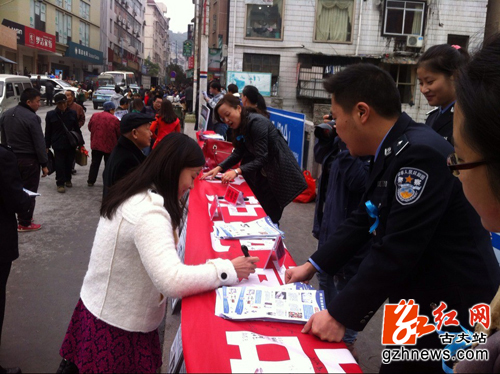红网古丈站11月18日讯(通讯员 杨贞凤 张超兰)11月15日,古丈禁毒巾帼志愿队正式成立。该县禁毒委员会、公安、妇联等部门联合新成立的禁毒巾帼志愿队,通过方阵游行、上街宣传、发放禁毒宣传资料、万人签名等群众喜闻乐见的方式,开展了以“携手禁毒,构建和谐古丈”为主题的禁毒集中宣传活动。活动进一步增强了群众远离毒品、拒绝毒品的意识,在该县掀起了全民禁毒热潮,营造了浓厚的禁毒氛围。