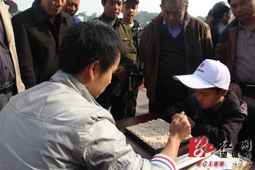 象棋比赛中一名小学生选手积极参赛,引来众人观战(刘赛 摄)