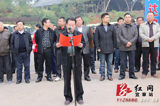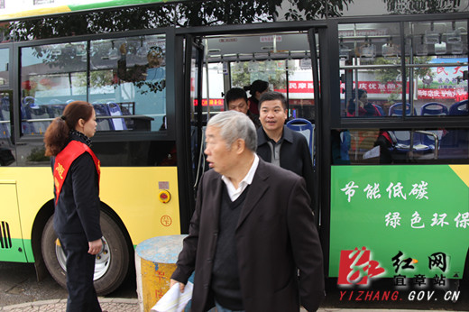 宜章县委书记欧阳锋宣布:“新型环保燃气公交车正式运营启动,发车!”