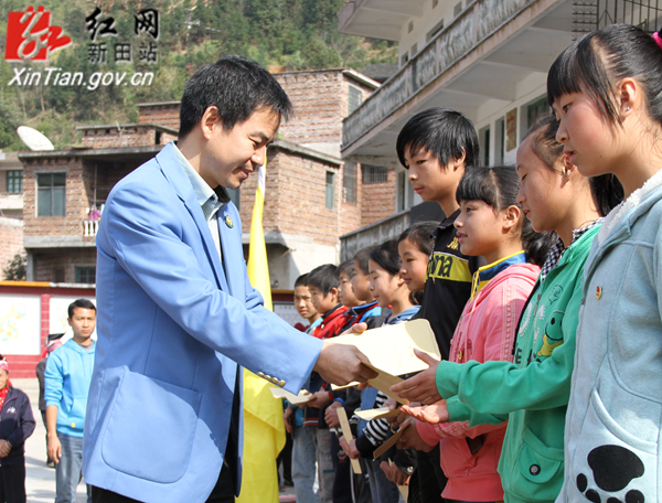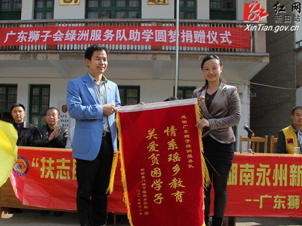红网新田站11月19日讯(分站记者 左富姣)温暖进瑶乡,大爱暖人间。11月18日,广东狮子会绿洲服务队秘书长郑志华一行到新田县门楼下瑶族乡中心校开展“扶志助飞·瑶乡您好”捐资助学活动,40名寒门学子受助。