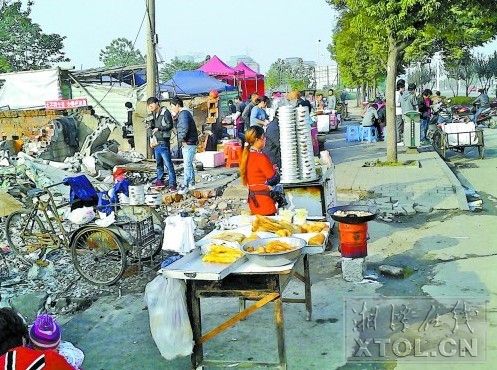 岳塘区霞城乡副乡长文聪表示,湖南城建职业技术学院对面的早餐摊位因占道经营,卫生状况差,他们取缔过多次,但效果不是很好。因这里是高新区远大项目征收地,他们已经与业主方进行了沟通,业主方也打算砌一堵围墙将这个项目的82亩地全部围起来。