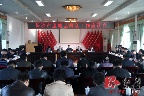 座谈会由望城区委副书记刘林平主持。望城区桥驿镇、大泽湖街道、白箬铺镇、格塘镇先后就群众工作进行经验交流和探讨。